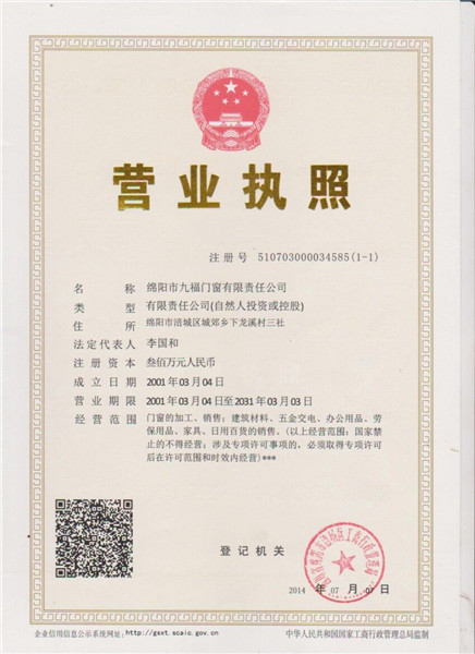 綿陽市九福門窗有限責(zé)任公司座落于中國西部美麗的科技城----綿陽。是川內(nèi)研發(fā)生產(chǎn)新型換代,生態(tài)環(huán)保室內(nèi)門和家具的企業(yè)之一。我公司生產(chǎn)的產(chǎn)品,綠色環(huán)保、堅固耐磨,抗擊性高、防潮阻燃、不含苯、不變形,連續(xù)六年經(jīng)四川省綿陽市質(zhì)量技術(shù)監(jiān)督局抽檢合格,符合中華人民共和國行業(yè)標(biāo)準(zhǔn)的各項要求。2011年,被中國產(chǎn)品培育委員會和中國品牌調(diào)查統(tǒng)計中心推介為《質(zhì)量·服務(wù)·信譽AAA企業(yè)》、《中國綠色環(huán)保產(chǎn)品》和《誠信經(jīng)營、消費者滿意產(chǎn)品》;注冊商標(biāo)“金九福”牌系列產(chǎn)品,在全國品牌評選推廣活動中,經(jīng)中國品牌認(rèn)證委員會和中國產(chǎn)品質(zhì)量評選中心審核,于2012年2月入選為《中國****品牌》…>>更多 |